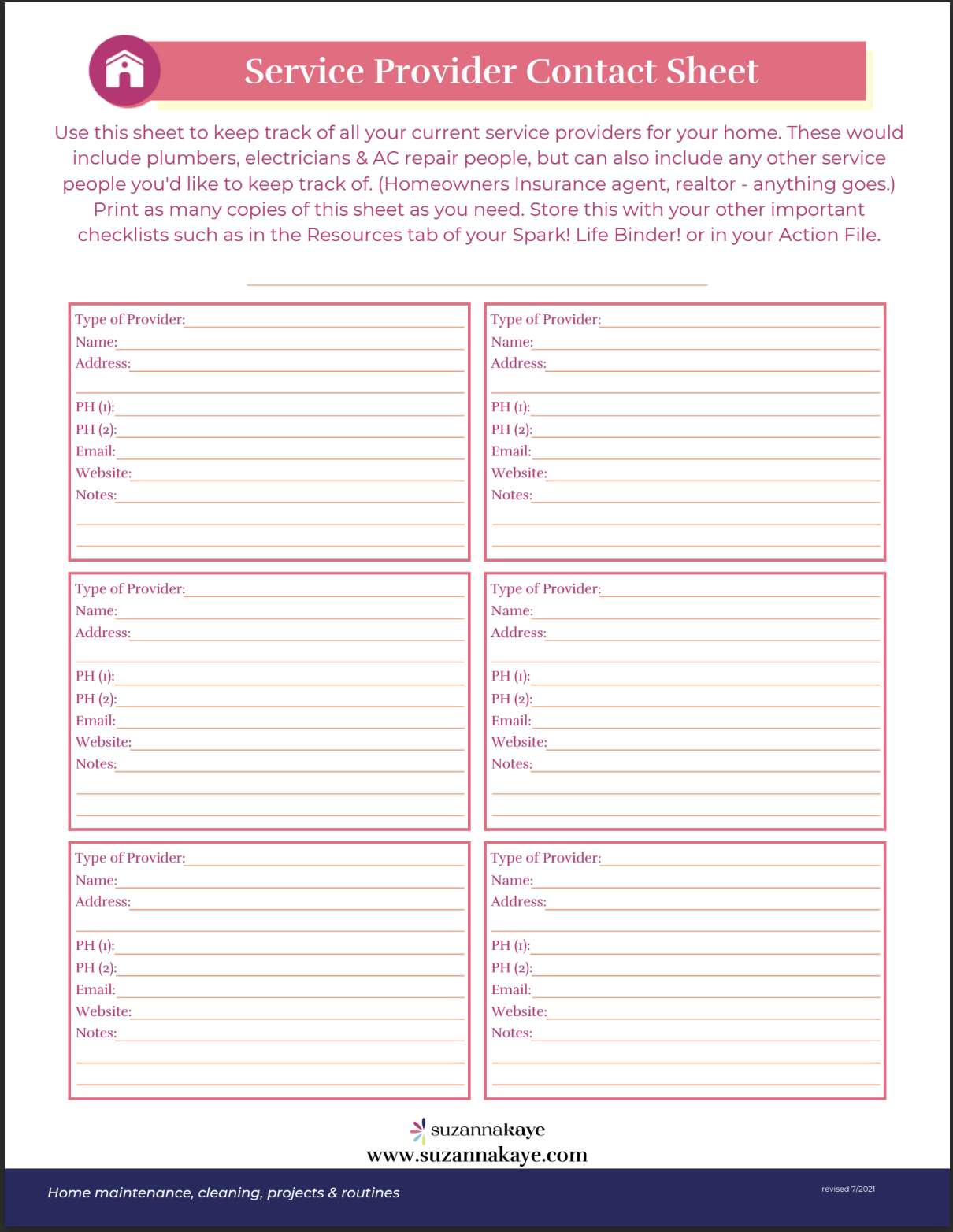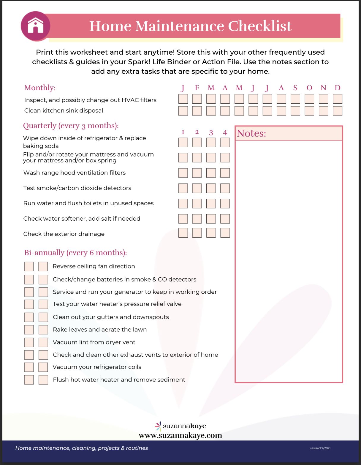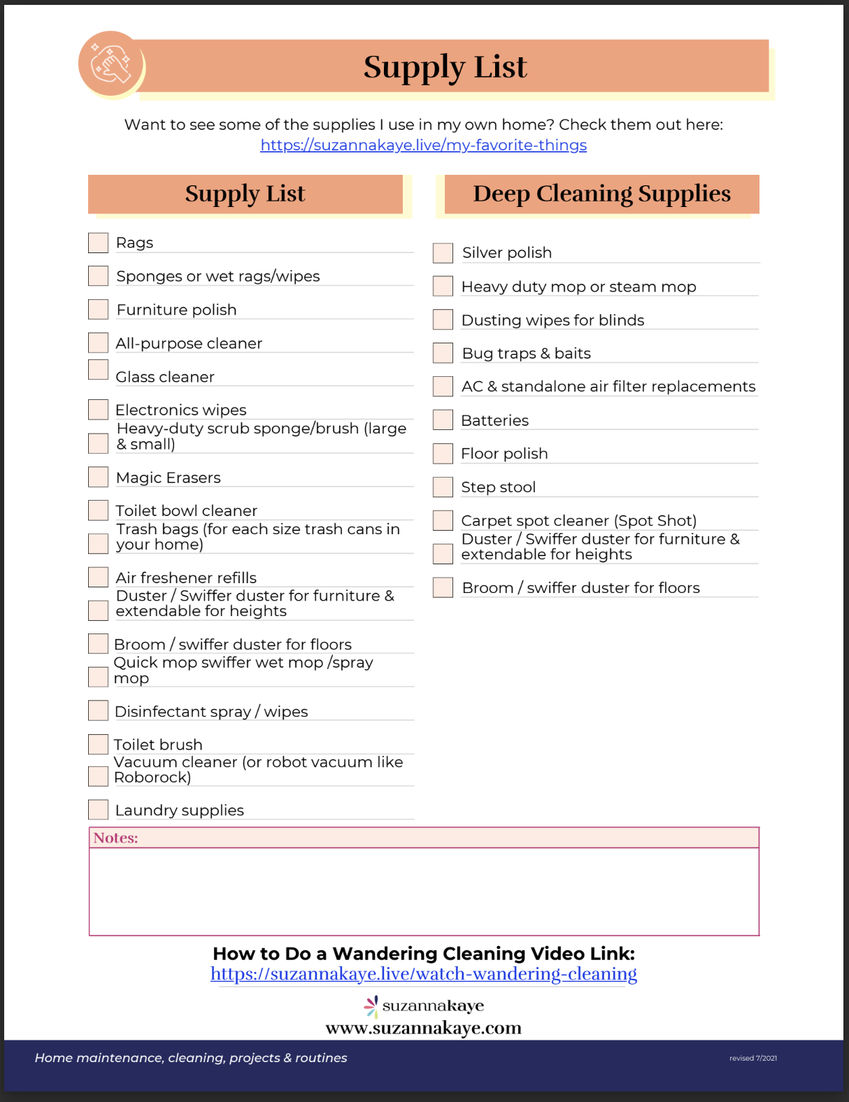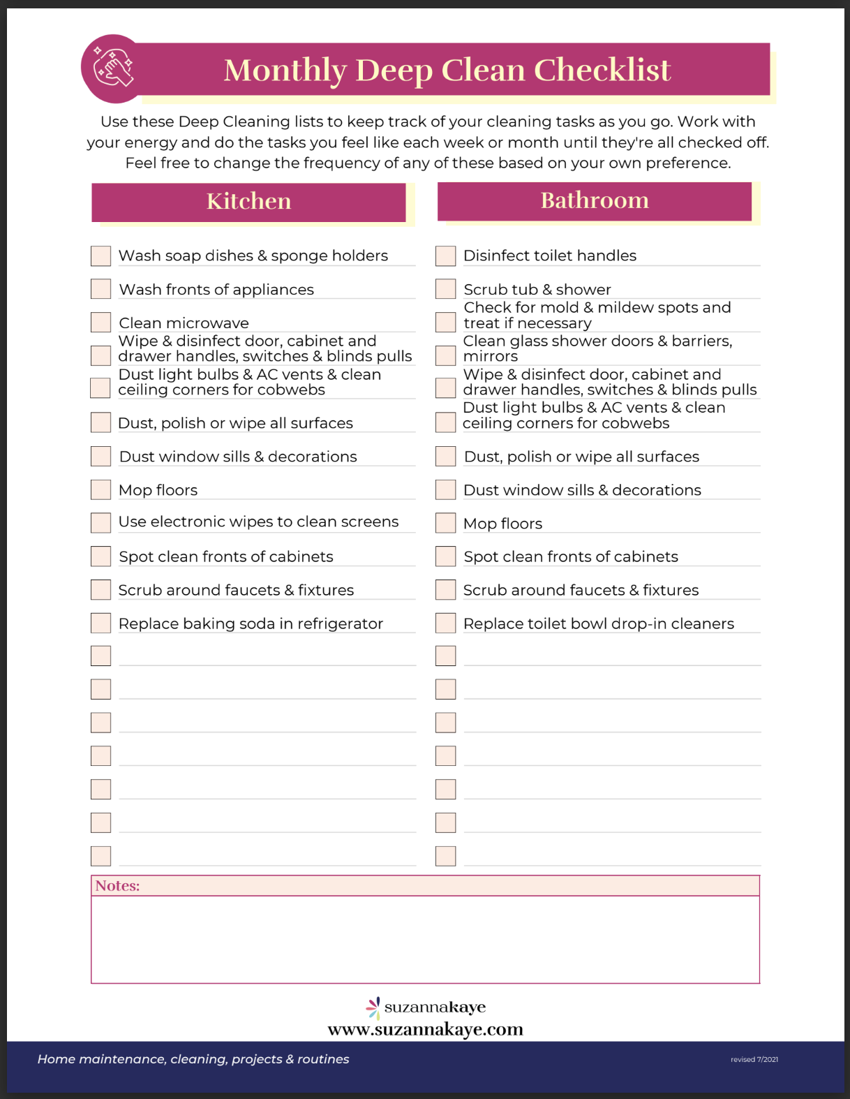 Deep Cleaning Task checklists broken down into lists for each room of your home, for: