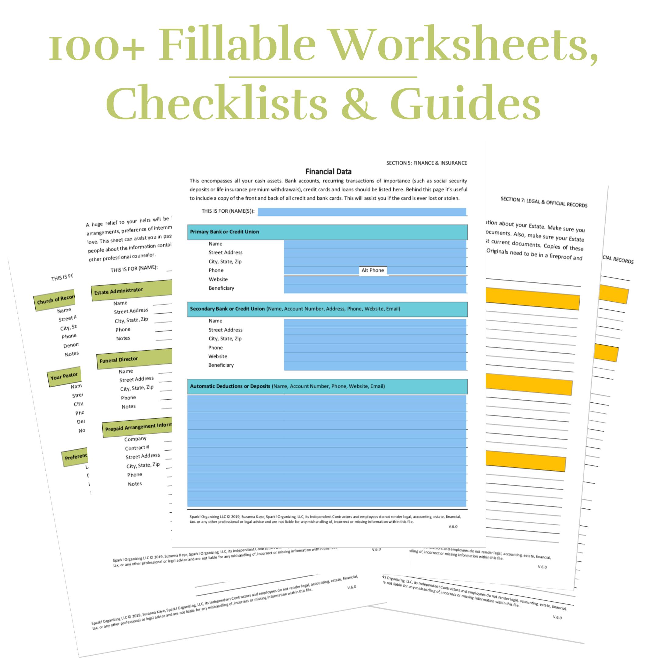 With fillable worksheets, individual section lists and your master checklist, you'll know exactly what to keep - and where to keep it!